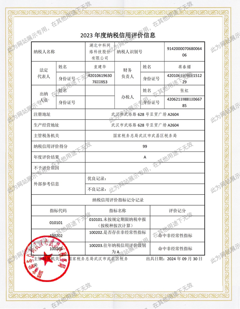 • A級納稅企業(yè)